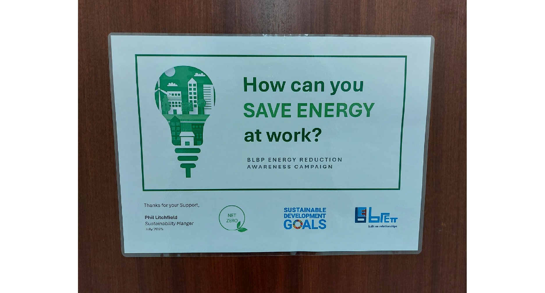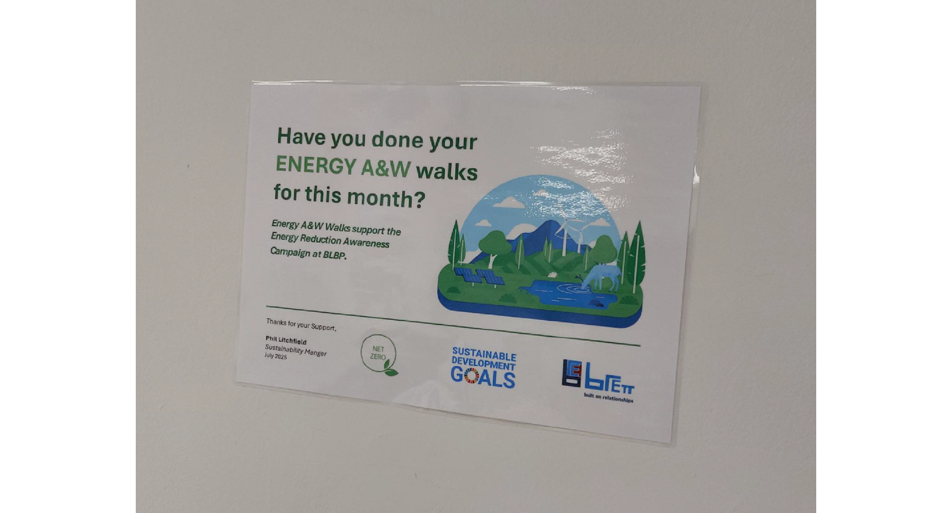Energy use has a significant impact on both the environment and our business. To address this, we launched our latest Energy Reduction Awareness Campaign, designed to influence energy consumption across all areas of Brett Landscaping — from site offices and manufacturing to laboratory spaces. By raising awareness and encouraging smarter energy use, we are reducing emissions, cutting costs, and driving long-term sustainable change.