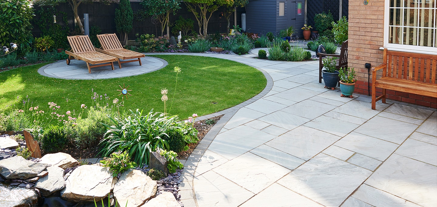 Optimising the feel of an English country garden, our Riven Sandstone paving range offers a selection of characterful colours.